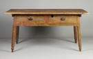| Turned & splayed legs. Dovetail drawers. Original 2-board top. |