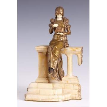 | Sgn. on dress. Depicting a young girl holding jewelry box on an onyx base. Excellent. Ht. 11 1/2" W 7" Est. $700-$1,000 |