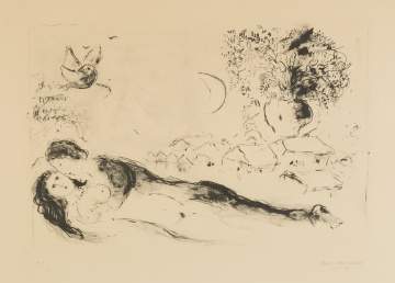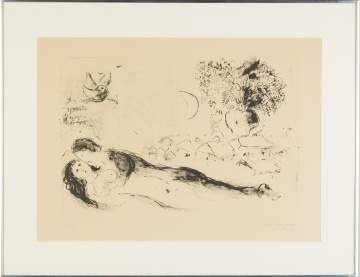 | Signed in pencil, Marc Chagall, 28/50. c. 1953. Lithograph on paper. |