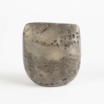| Signed. c. 1995. Oval vessel with flat top and orange circular insertion. |