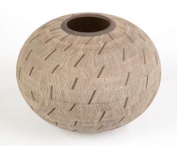 | Lot #: 212 Diana Goudy, Brown Sgraffito Pot |