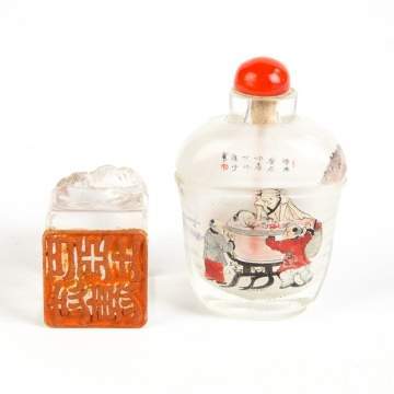 | Lot #: 311 Chinese Rock Crystal Seal & Inside Painted Snuff Bottle |