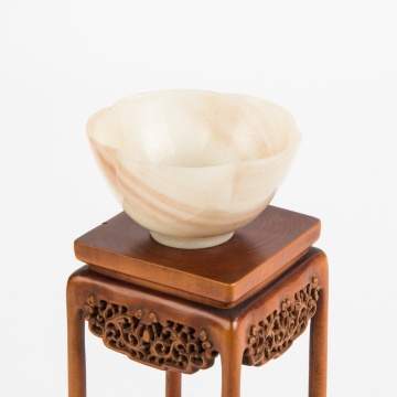 | Lot #: 315 Chinese Miniature Jade Bowl & Carved Teakwood Stand |