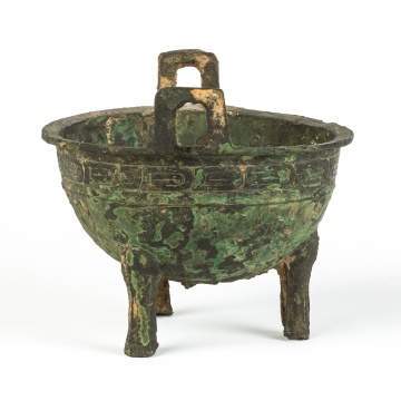 | Lot #: 351 Chinese Bronze Handled and Footed Cooking Pot |