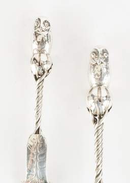 | Pastry server and Spoon. Signed and numbered 39. With owls and twisted stem handles. 7.5 ozt. |