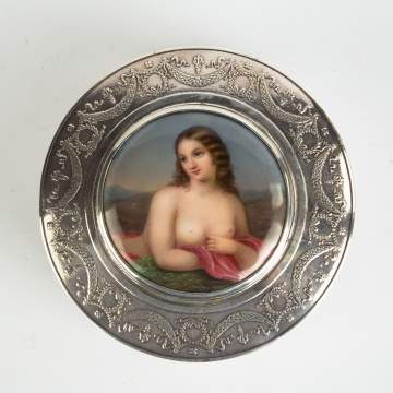 French Silver Box with Porcelain Center