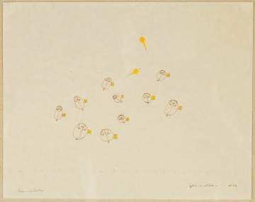 | Signed lower right, Baruchello. Titled lower right and dated '63. Drawing on paper. |