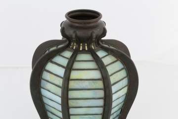 | Lot #: 576 Early Tiffany Studios Leaded Glass and Bronze Lantern Shade |