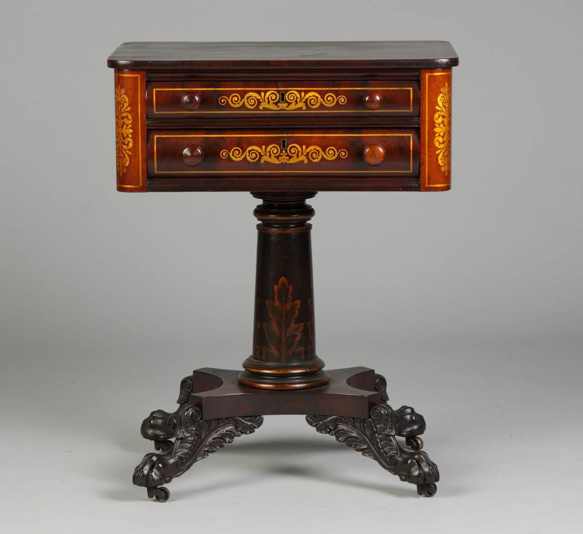 | Lot #: 45 Classical 2-Drawer Mahogany Sewing Stand |