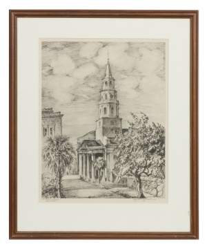| Lot #: 55 Elizabeth O'Neil Verner (American 1883-1979) "St. Michaels Church, Charelston" with Signed Book "Mellowed by Time" |