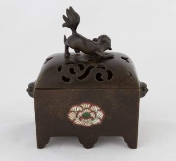 | Lot #: 21 Japanese Bronze and Enameled Incense Burner |