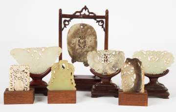 | Lot #: 24 Seven Chinese Carved Jade Pendants and Carvings |