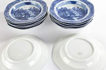 | Lot #: 32 Chinese Export Canton Blue and White Porcelain Soup Bowls, Set of 12 |
