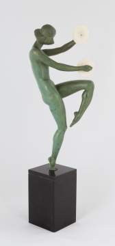 | Early 20th century. Signed Bolleste. Art deco bronze with green patina. |