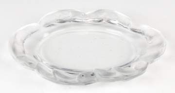 | Lot #: 202 Lalique Frosted Oval Plate with Fish Border |