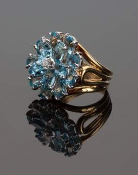 | Lot #: 282 Aquamarine and Diamond 18K Gold Ring |