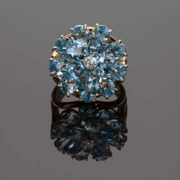 | Aquamarine approximately 7 cts total. Diamonds approximately .10 cts. |