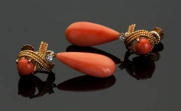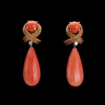 | Lot #: 292 Tiffany & Co. Coral and Diamond 14K Gold Earrings |