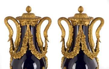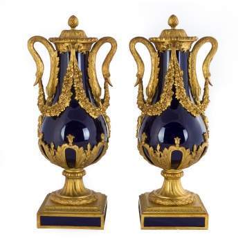 | Lot #: 313 Sevres Gilt Bronze Cobalt Blue Urns |