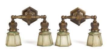 | Early 20th century. Each shade signed, Tiffany Studios NY. Brownish green patina. |