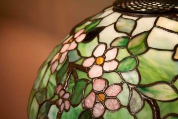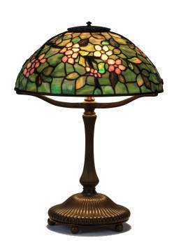 | Lot #: 341 Tiffany Studios New York Apple Blossom Leaded Glass and Bronze Table Lamp |
