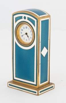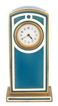 | Lot #: 364 Swiss Blue and White Guilloche Enamel Clock |