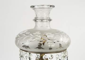 | 19th century. Period cut glass shade and prisms. |