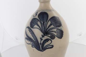 | Lot #: 438 F. Stezenmeyer, Rochester, NY, Three Gallon Jug with Deep Blue Cobalt Flower |