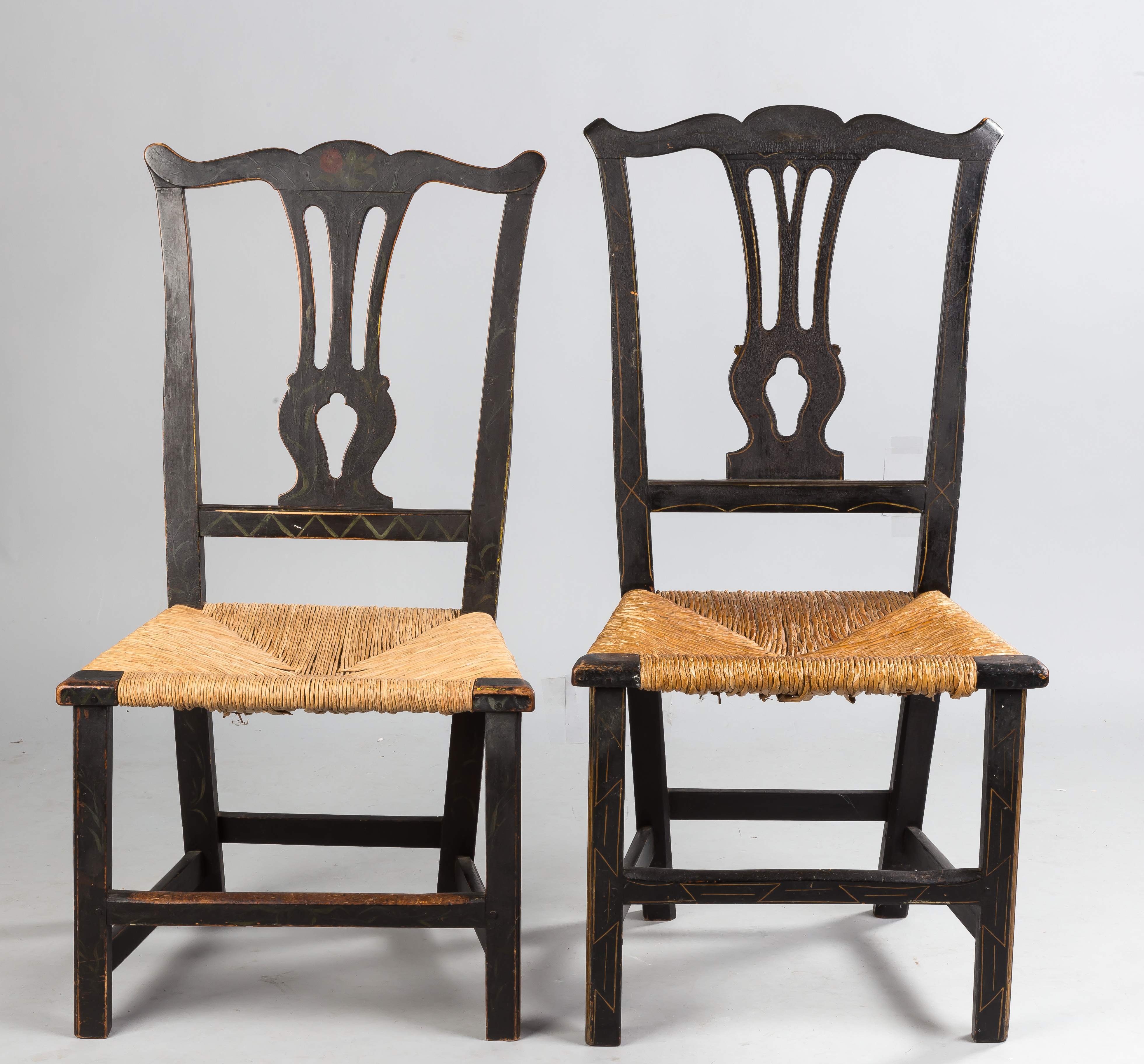| 18th Century. Old paint with rush seats. |