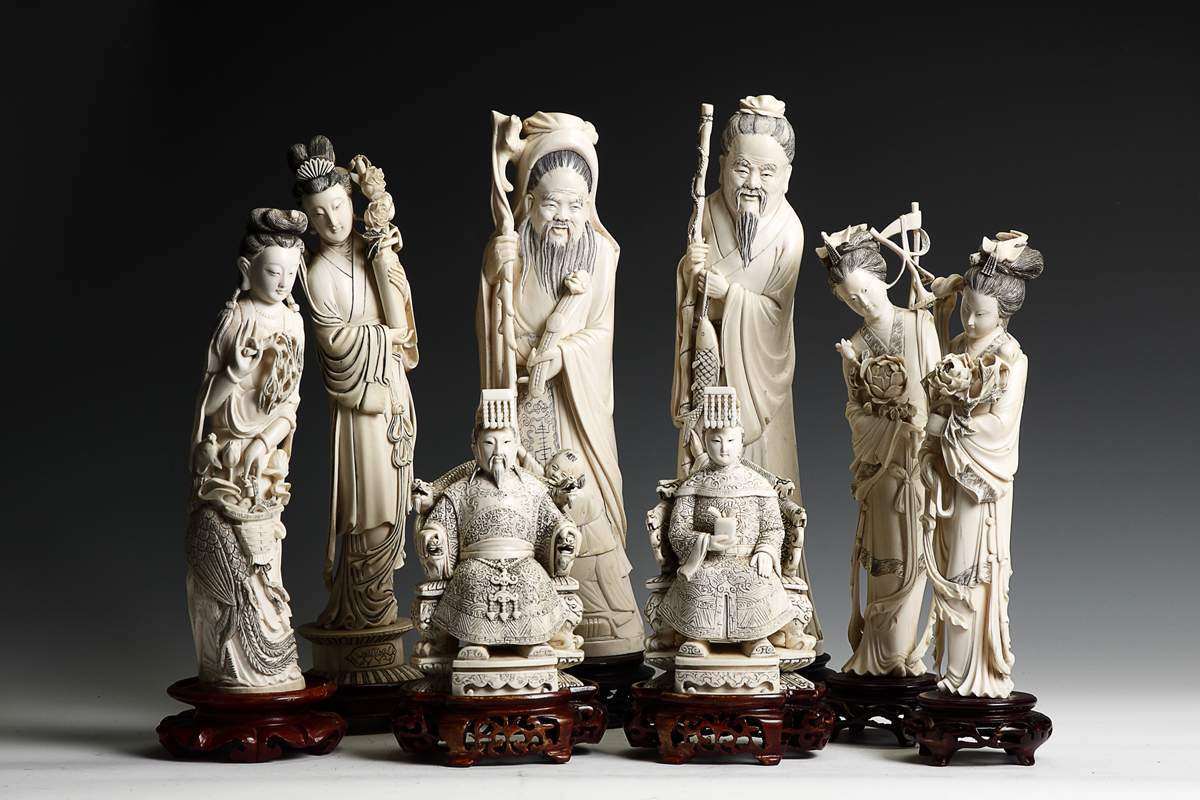 | Lot #: 210 2 Carved & Inked Ivory Chinese Lady Court Attendants |