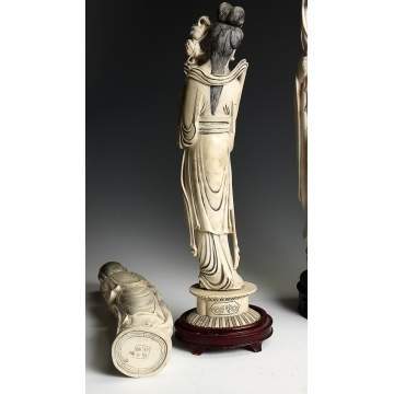 | Lot #: 208 2 Carved & Inked Ivory Quan Yin Figures |