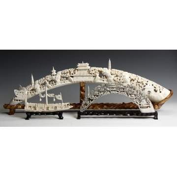 | Lot #: 214 Chinese Carved Ivory Tusk & Hippo Tooth |
