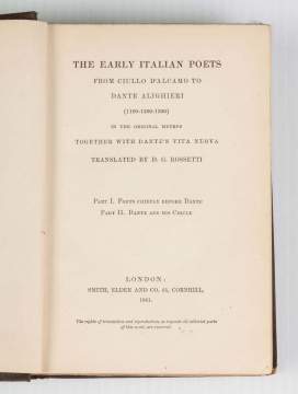 | Lot #: 28 "The Early Italian Poets from Ciullo D'Alcamo to Dante Alighieri" Translated by D. G. Rosetti |