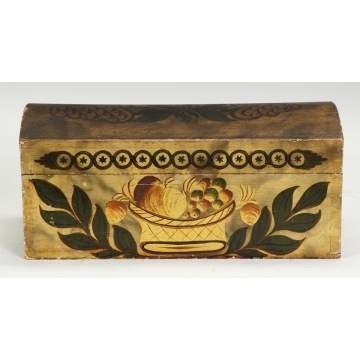 | Lot #: 470 NY State Painted Decorated & Smoke Grained Pine Domed Box |