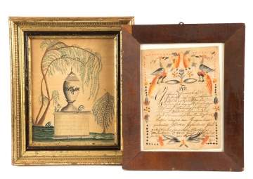 | Lot #: 405 Watercolor Memorial and Fraktur |