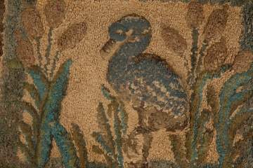 | Lot #: 422 Hooked Rug with Heron and Cattails with Trupunto Work |