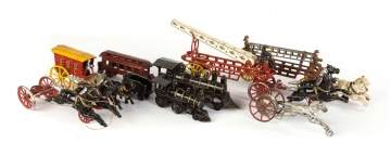 Group of Various Cast Iron Horse Drawn and Locomotive Toys