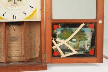 | Original painted dial and paper label. Time and strike, wood works movement. |