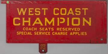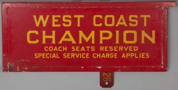 | Painted Metal Advertising Sign. West Coast Champion Coach Seats Reserved, Special Service Charge Applies. |
