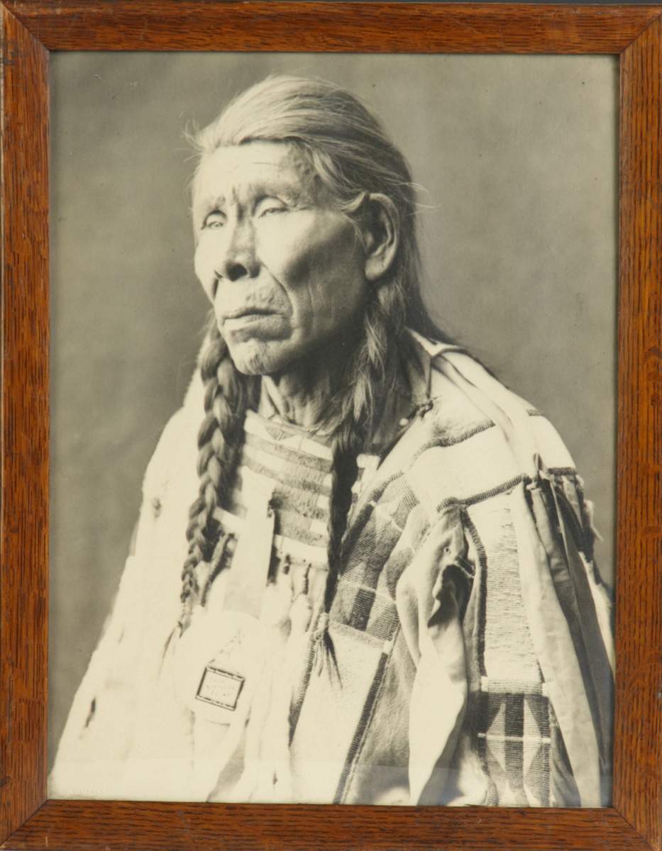 | Each photo embossed w/ F.R. Meyer, Buffalo, NY. Names listed on back of photos: Three Beards (92 years old); Buffalo Body; Three Bears; Maggie Duck Head; Many Guns; Wades in Water; Little Plume; Unnamed. |