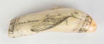| Lot #: 20 Large 19th Century Scrimshaw Whale Tooth with Whaling Scene |