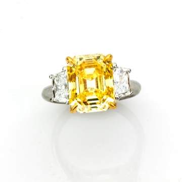 | Lot #: 139 5 Carat Fancy Vivid Yellow Diamond & Diamond Ring |