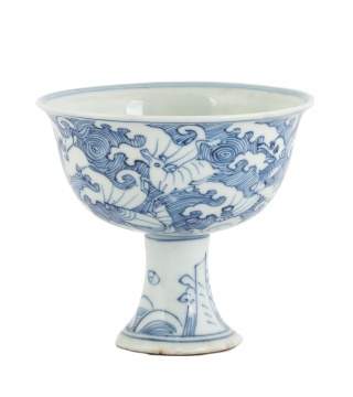 | Lot #: 158 Chinese Blue & White Stem Cup |