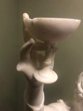 Condition Missing one finger to raised hand and a couple chips to cup. |