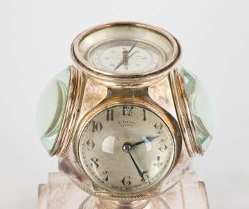 | Circa 1900. Silver plate. With compass, thermometer, barometer & clock. |
