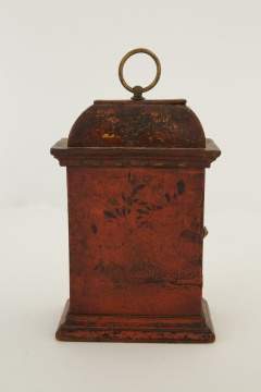 | Lot #: 242 French Miniature Vermilion Chinoiserie Carriage Clock |