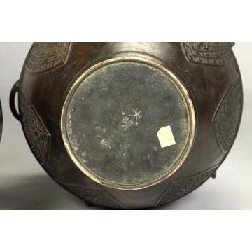 | Early Bronze Hu Vase. Stylized elephant ring handles w/archaic design. |
