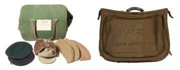 Group of Military Hats, Bag and Suitcase