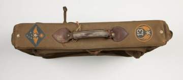 | Lot #: 352 Group of Military Hats, Bag and Suitcase |