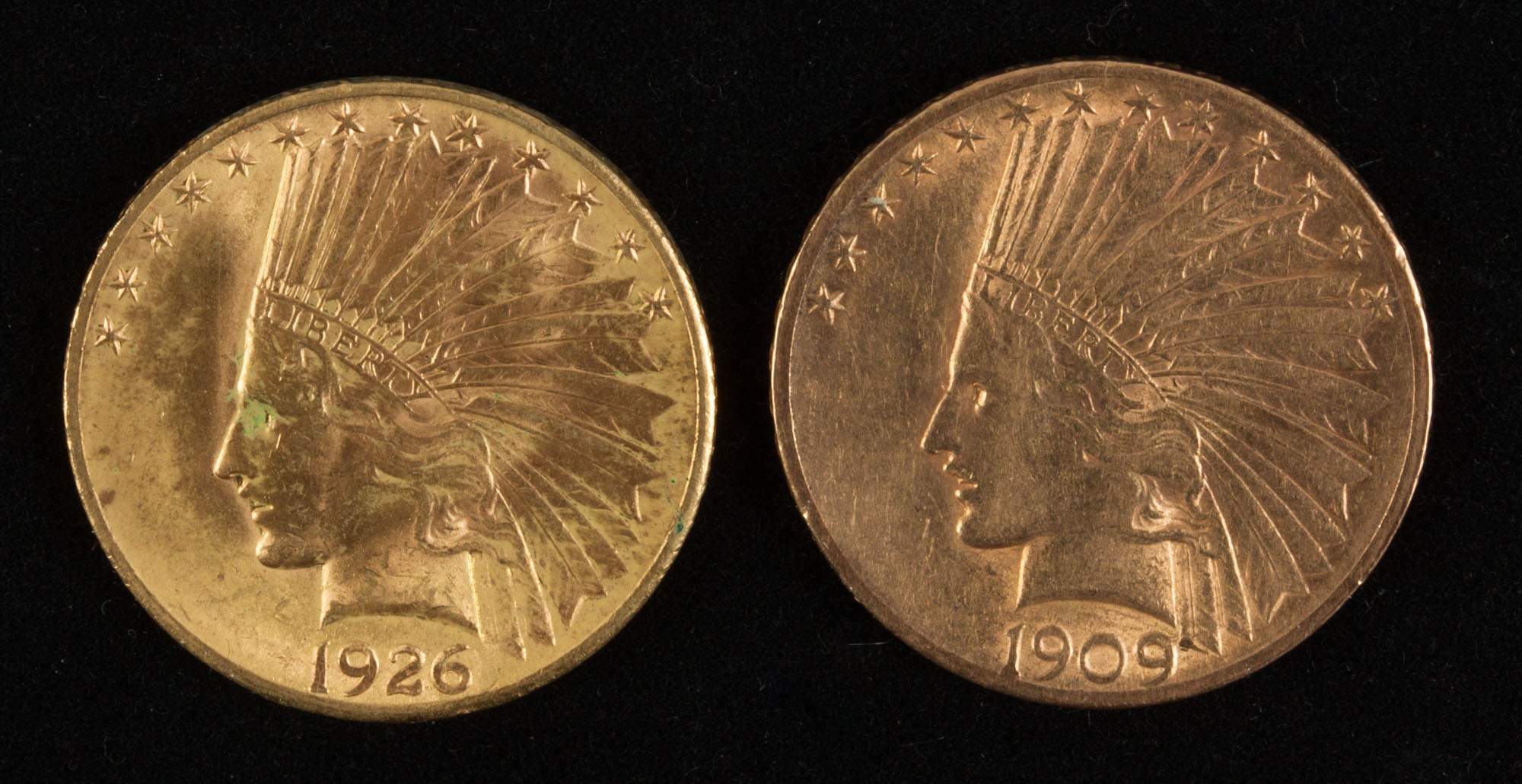 | Lot #: 35 1906 & 1926 10 Dollar Indian Head Gold Coins |